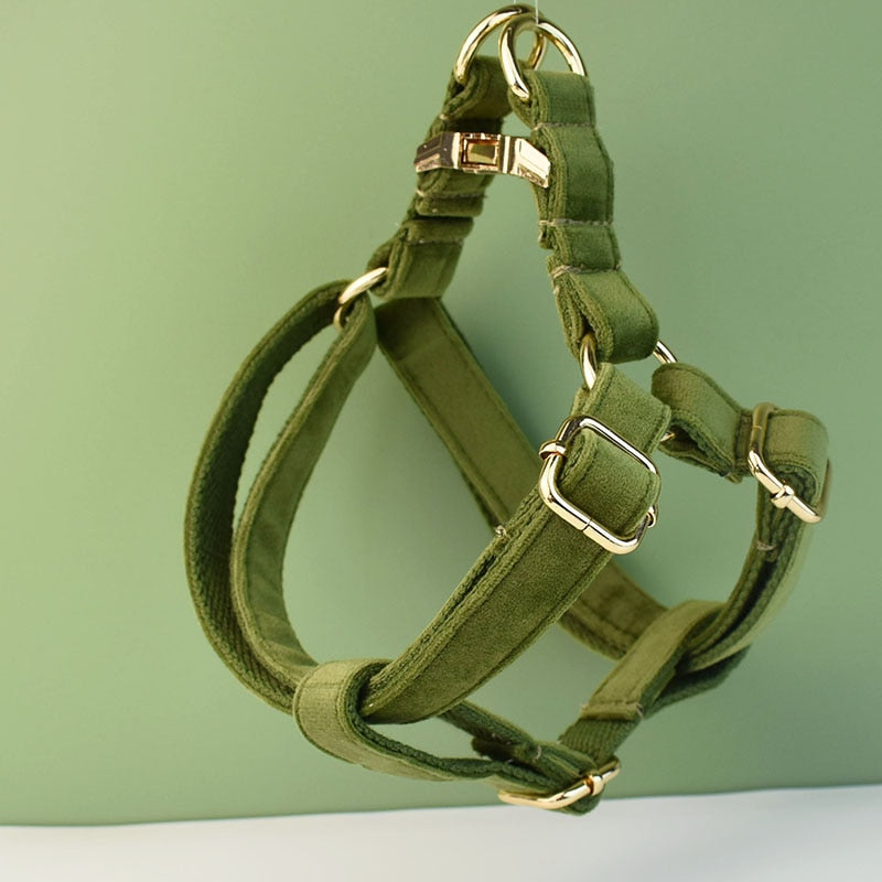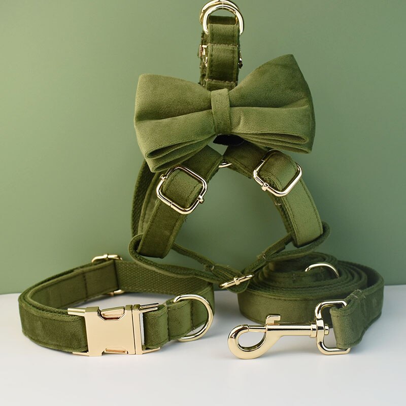 Country Green Velvet! Yes please! Add this stylish set to your pups pupdrobe. Lets walk in style!