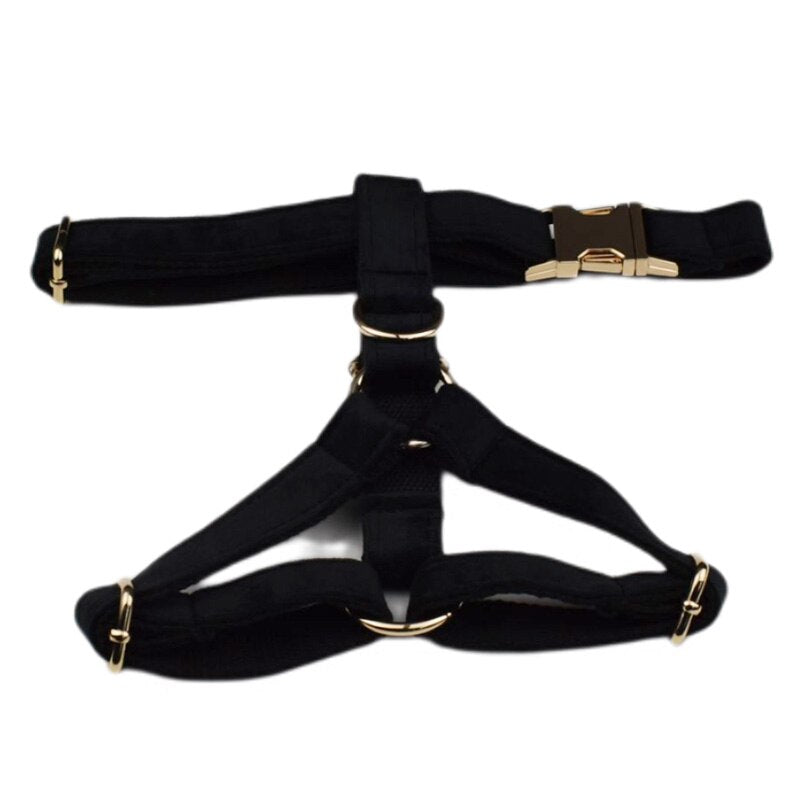 Black Velvet Harness: Wrap your pup in the plush embrace of our Black Velvet Harness. Crafted from soft and durable velvet fabric, this harness combines comfort with undeniable style. The adjustable straps ensure a secure and customised fit, while the sleek black colour exudes an air of understated elegance. Take your dog's comfort and fashion to new heights with this luxurious harness.