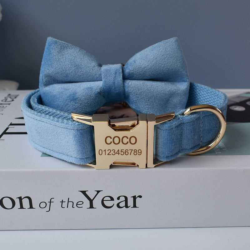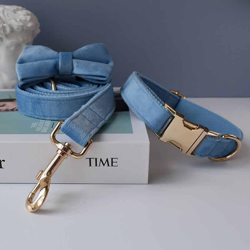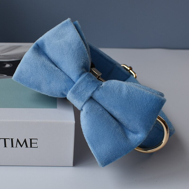 This beautiful mid blue set would make a stylish and comfortable addition to any furry friend's pupdrobe. The soft velvet material is gentle on your dog's neck, while the sturdy construction ensures safety and security during walks or other outdoor activities.