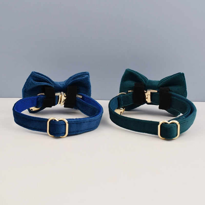 Introducing our brand new "Ocean Velvet" cat collar collection, designed to add a touch of elegance and sophistication to your furry friend's wardrobe. Each collar is made from high-quality, soft velvet material that is gentle on your cat's delicate skin, ensuring maximum comfort throughout the day. And if you're looking to add a little extra flair, we offer the option to add an adorable bow to your collar for a touch of fun and playfulness.
