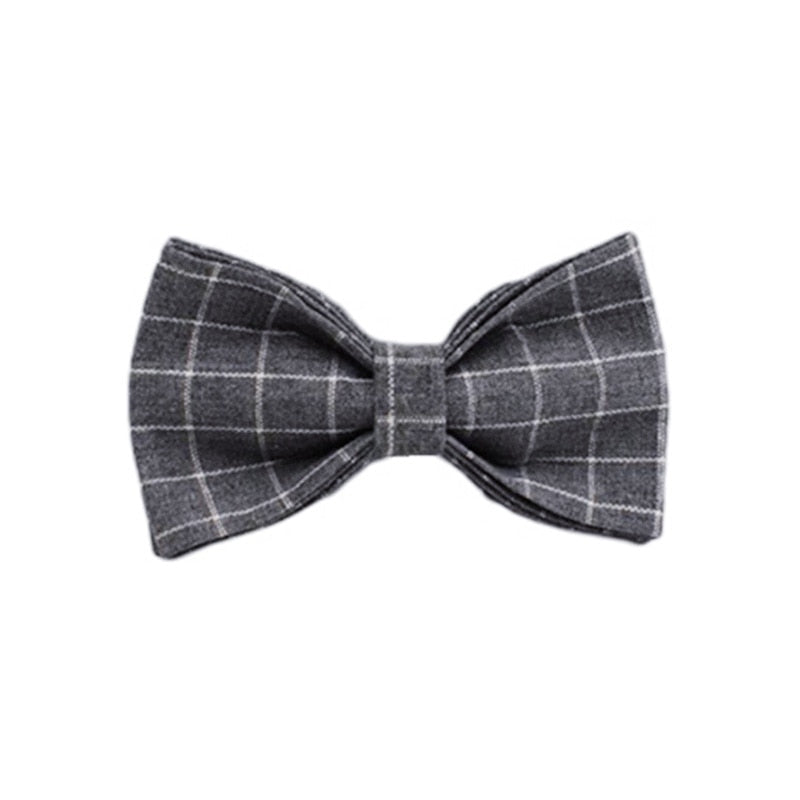 Grey Check Bow: Complete your dog's ensemble with our Grey Check Bow, a stylish accessory that adds a touch of refinement. The grey check pattern creates a timeless and polished look, making your furry friend stand out in any setting. Easily attach the bow to your dog's collar or harness, and let them showcase their sophisticated style.