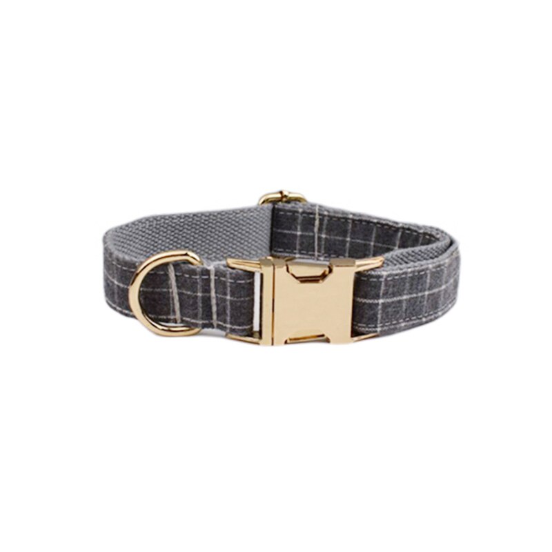 Grey Check Collar: Adorn your dog's neck with our Grey Check Collar, a symbol of timeless style. The sturdy construction and adjustable buckle provide a secure and comfortable fit, while the grey check pattern showcases a refined and sophisticated look. Let your furry friend make a fashion statement with this chic collar.