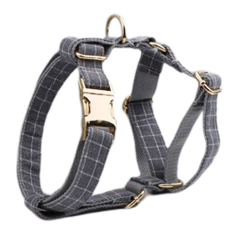 Grey Check Harness: Wrap your pup in the classic charm of our Grey Check Harness. Crafted from high-quality materials, this harness offers both comfort and durability. The adjustable straps ensure a secure and customised fit, while the grey check pattern adds a touch of understated elegance. Let your dog walk with poise and grace in this stylish Grey Check Harness.