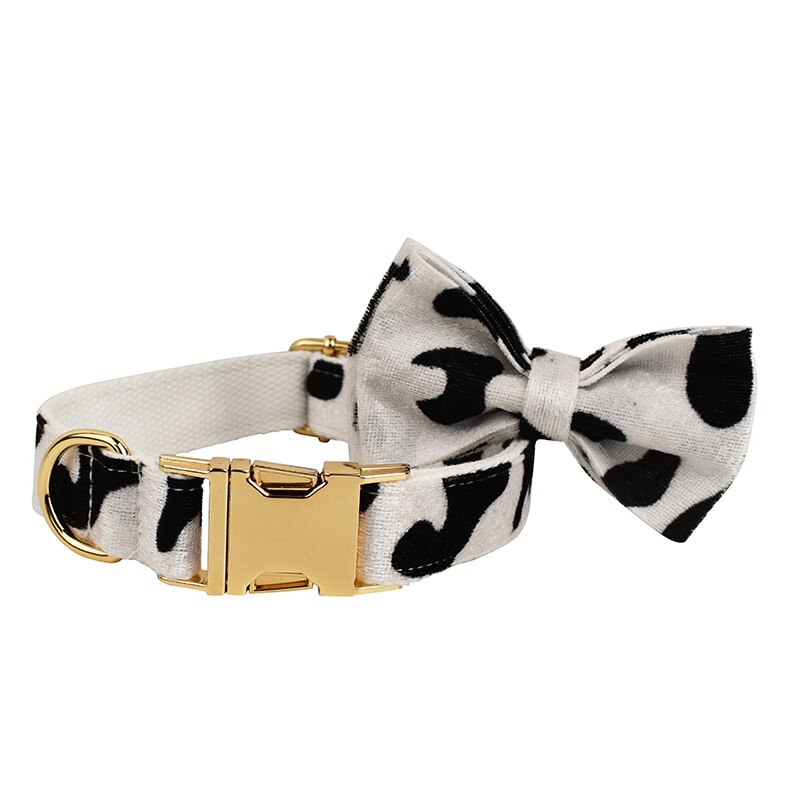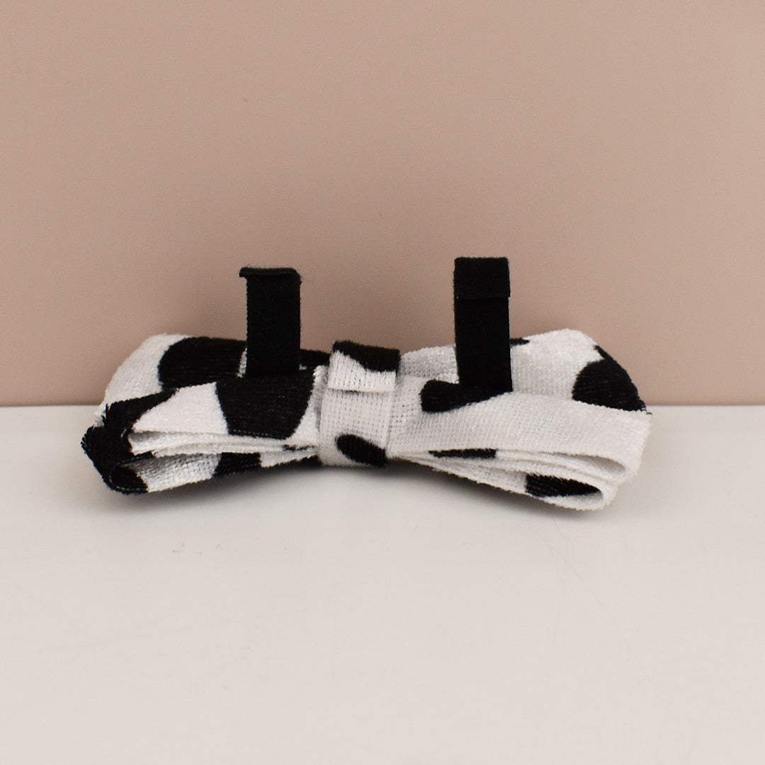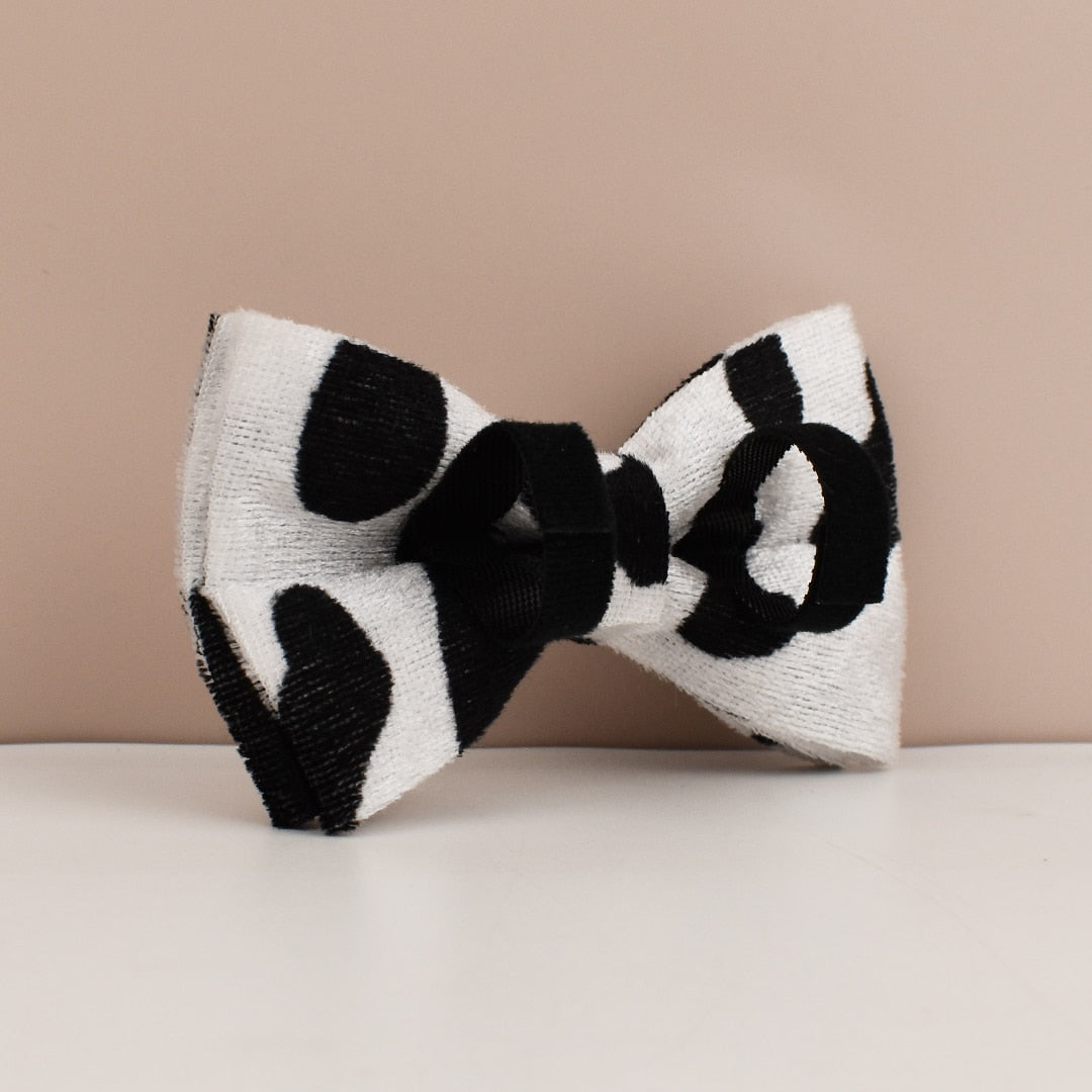 Cow Print Bow: Complete your dog's ensemble with our Cow Print Bow, a charming accessory that adds a dash of whimsy. The cute cow print creates a vibrant and delightful look, making your furry friend stand out in any setting. Easily attach the bow to your dog's collar or harness, and let them showcase their unique sense of style.
