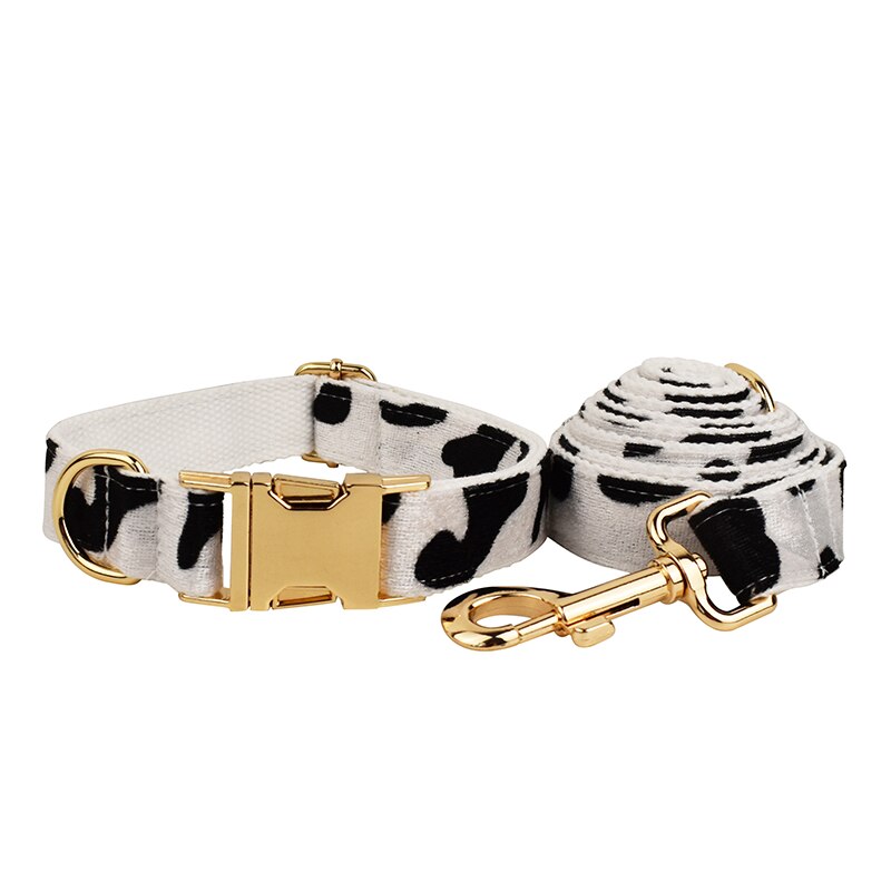 Cow Print Collar: Adorn your dog's neck with our Cow Print Collar, a symbol of playful charm. The sturdy construction and adjustable buckle provide a secure and comfortable fit, while the adorable cow print showcases their fun-loving nature. Let your furry friend make a statement with this eye-catching collar.