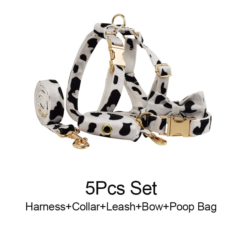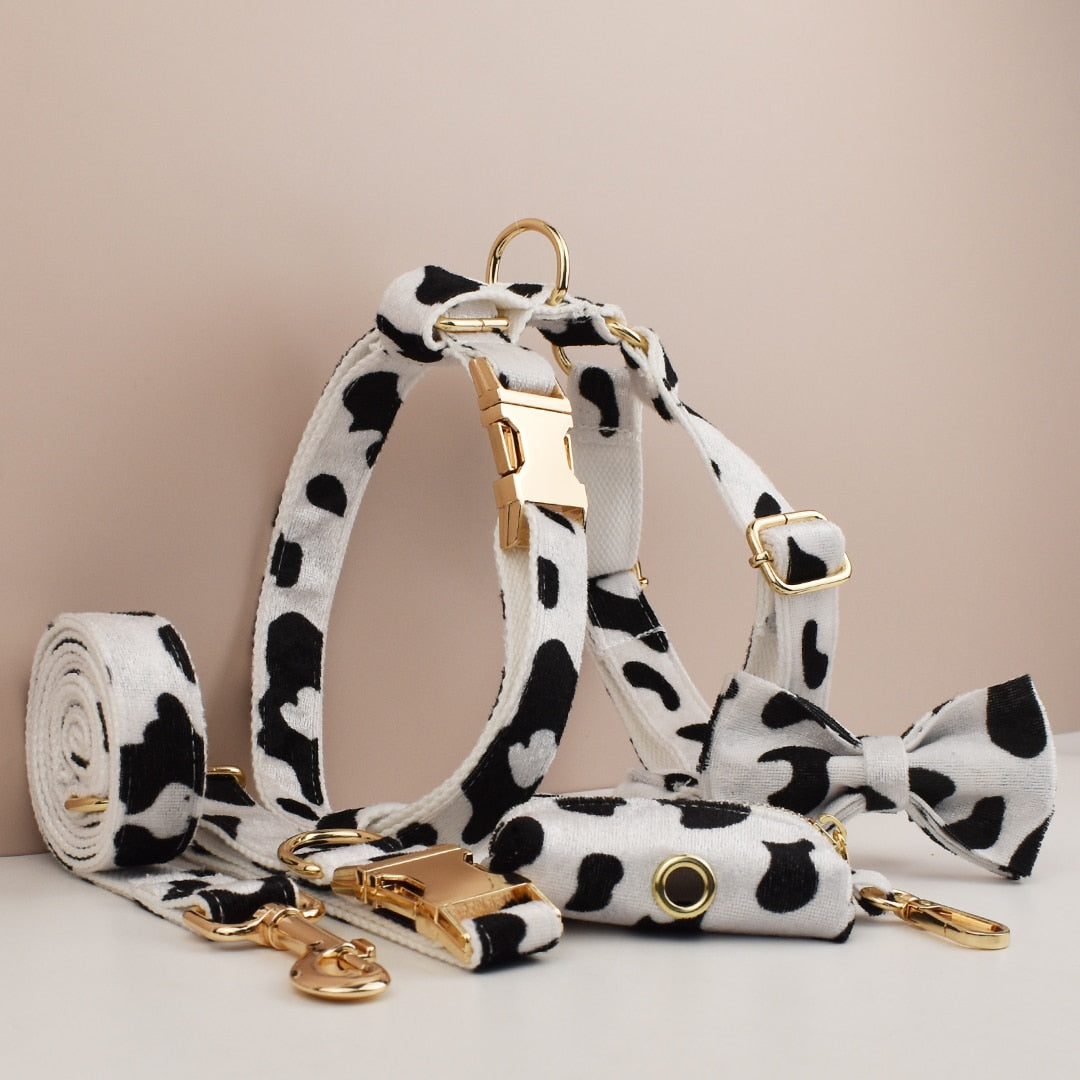 Indulge your dog in the playful charm of our Cow Print Collection. Let them revel in the comfort and style of the cow print harness, collar, lead, and bow. Celebrate the bond between fun and fashion, and make every outing a delightful adventure.