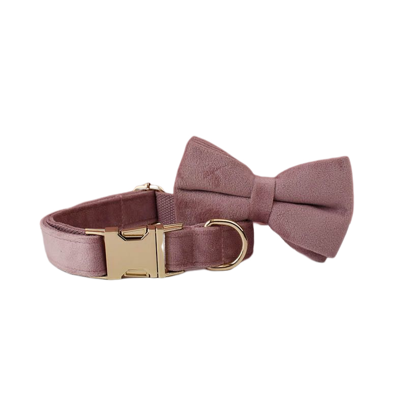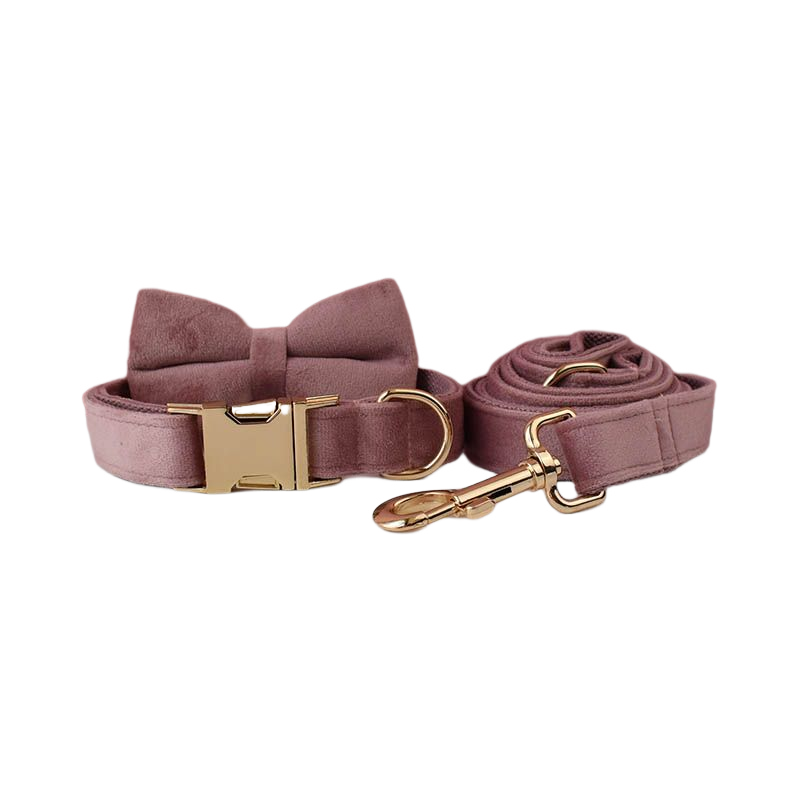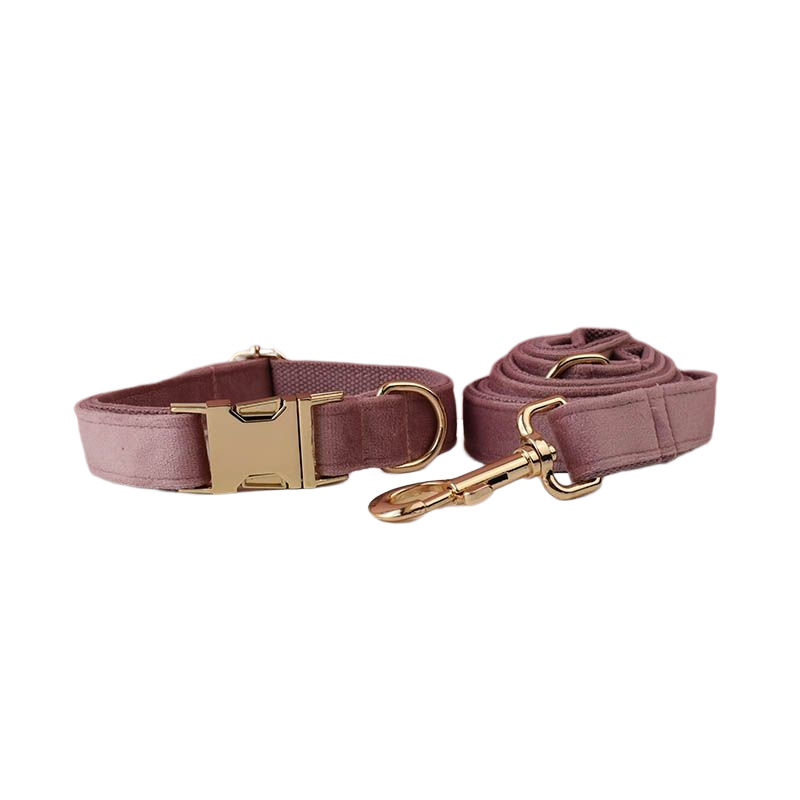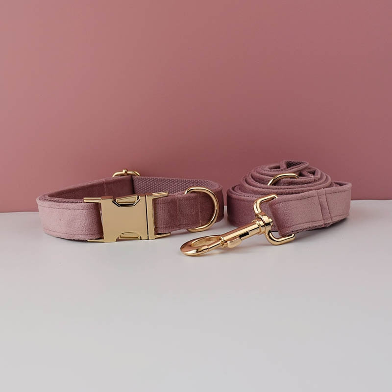 A luxury dusk pink velvet dog collar and lead set is a stylish and high-quality accessory that will make your PAWSOME friend feel like a true VIP. It is perfect for special occasions or just for adding a touch of luxury to your dog's everyday style.