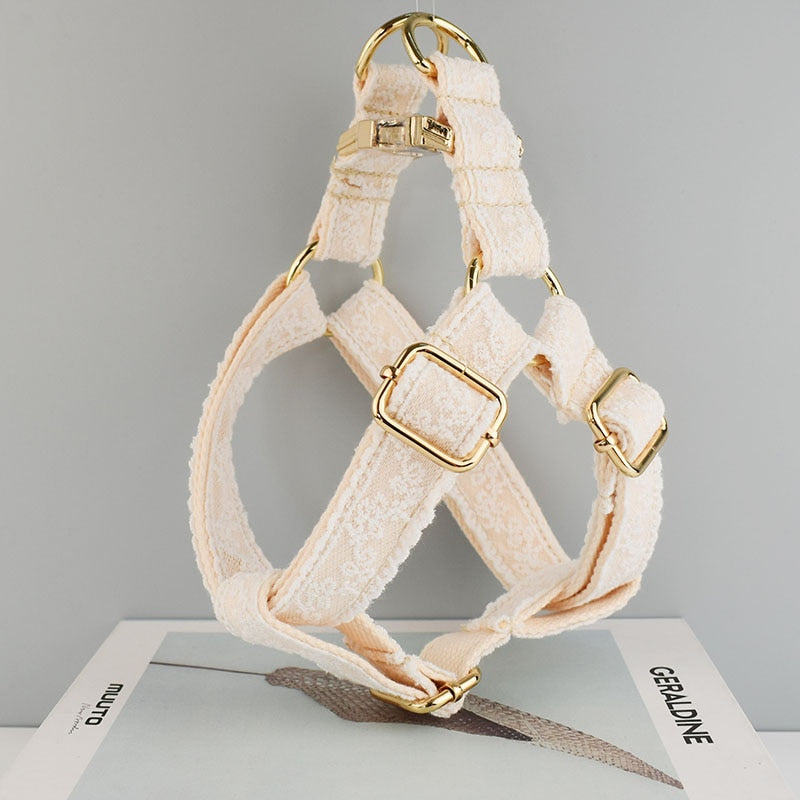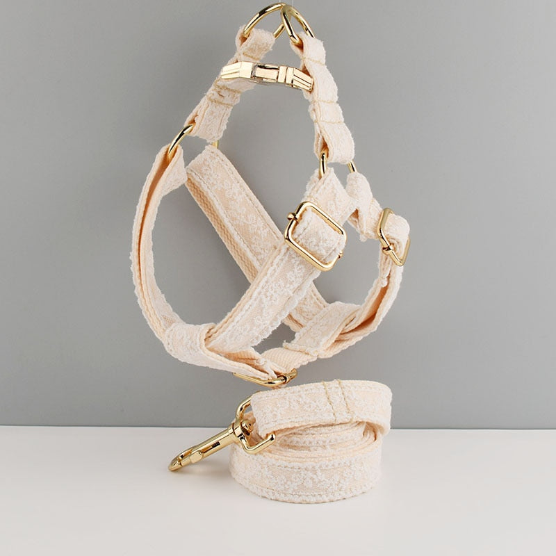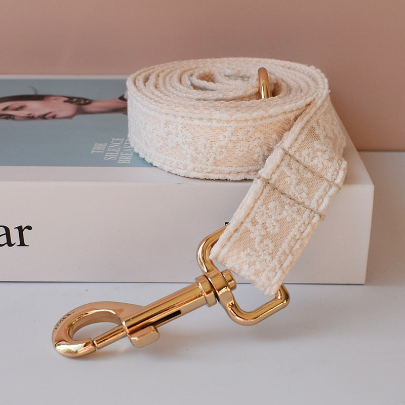 Introducing our White Lace dog lead and harness set, the perfect accessory for your PAWSOME friends! Made with high-quality materials, this set is both stylish and durable, ensuring that your dog stays safe and secure while looking their best.