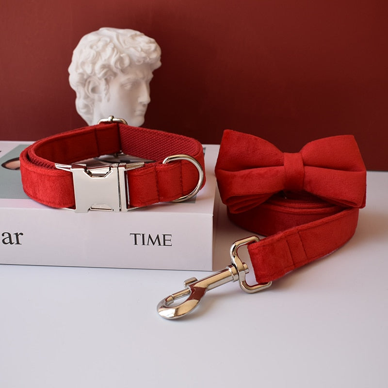 This collar and lead set would be a striking and elegant choice for any PAWSOME friend who loves to stand out in a crowd. Whether you're going for a walk in the park or attending a special event, your pup will look and feel their best with this rich red velvet collar and lead set.